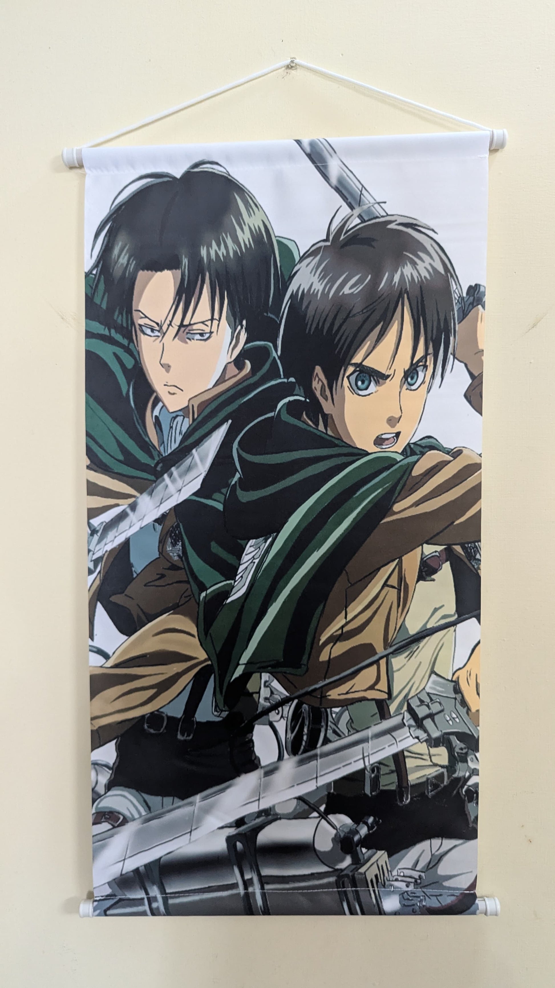 This stunning Attack on Titan Wall Scroll is a must-have for every fan of the series. Featuring iconic characters and scenes from the epic world of Attack on Titan, this wall scroll captures the intensity and drama of the series with sharp details and bold colors. Perfect for anime-themed spaces, gaming setups, or as a standout gift, this wall scroll is a treasure for fans and collectors alike.