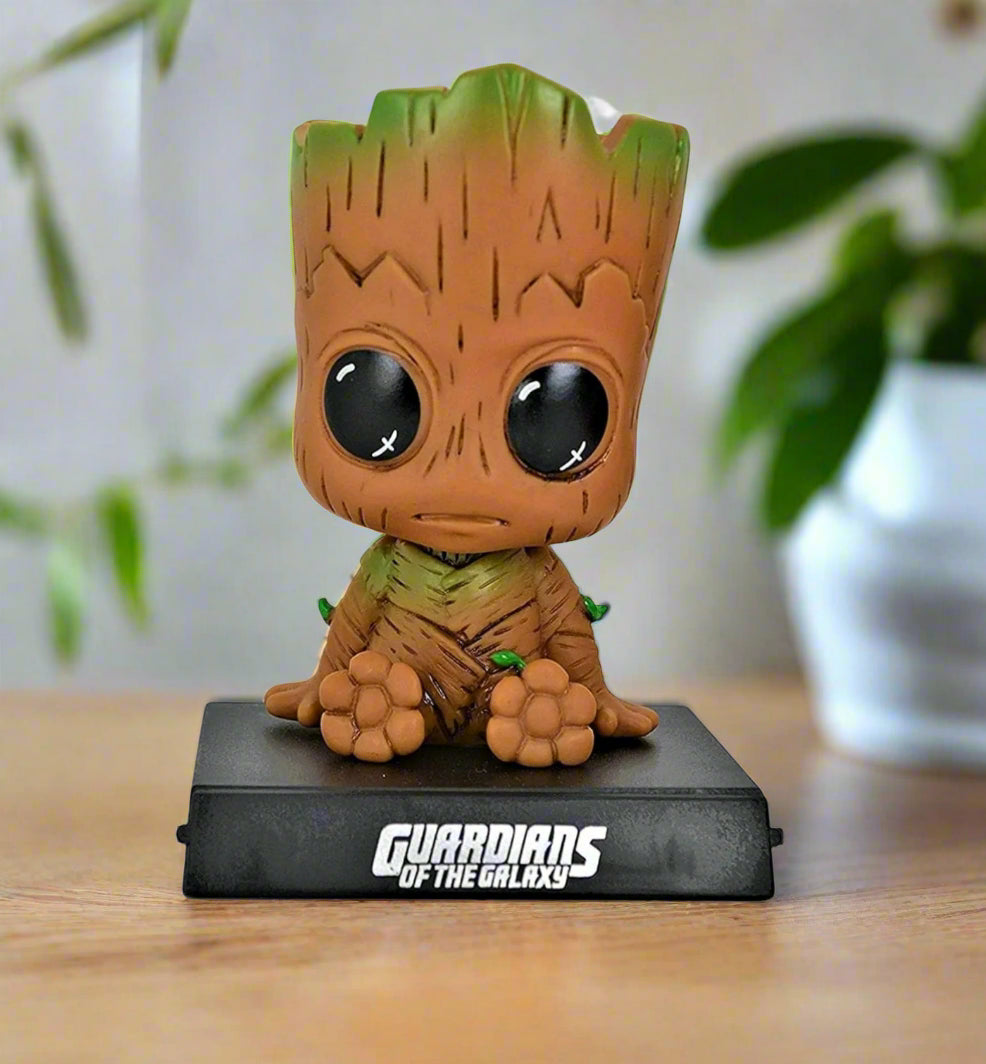 Embrace the charm of the galaxy's most adorable tree with this Groot Bobblehead! From Guardians of the Galaxy, this premium-quality collectible features Groot in his iconic "I am Groot" form, ready to add some heart and humor to your space. Whether on your desk, shelf, or car dashboard, this cute bobblehead is the perfect addition for Marvel fans and collectors alike.