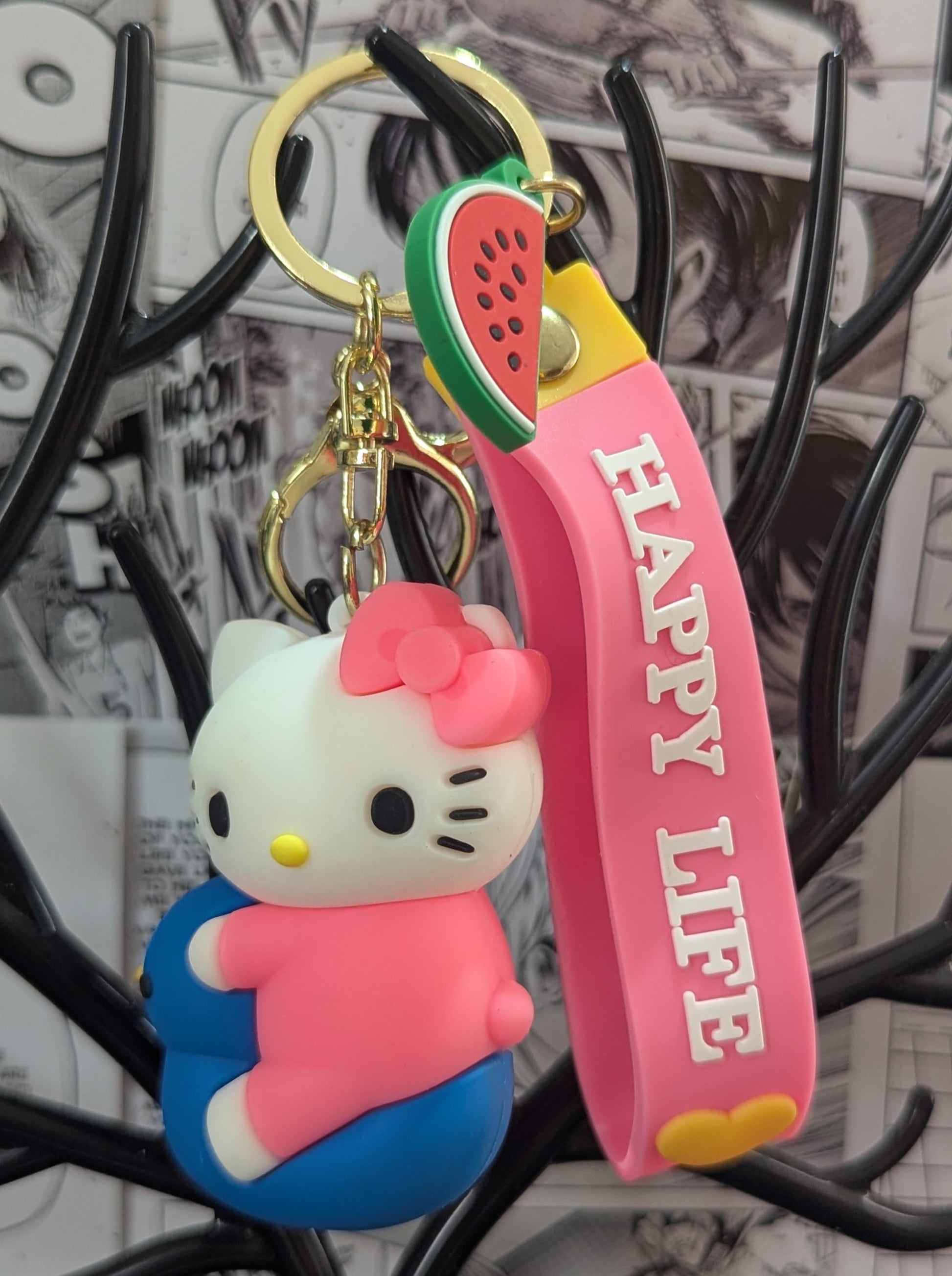 Hello Kitty - Pink Hello kitty on blue duck - Keychain