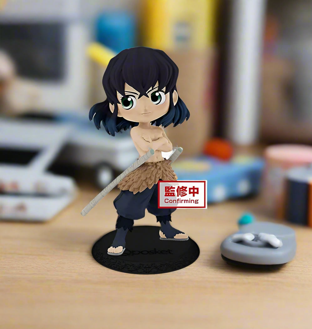 - Iconic Design: The figure captures Inosuke's muscular physique, and dual Nichirin Blades with exquisite detail, all in a charming Q Posket style.