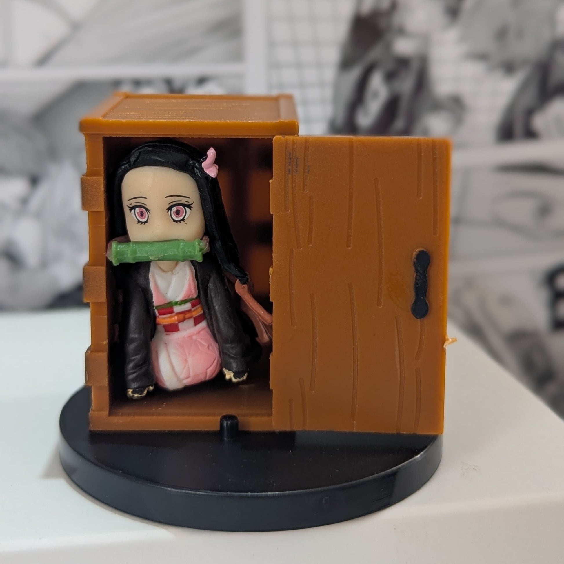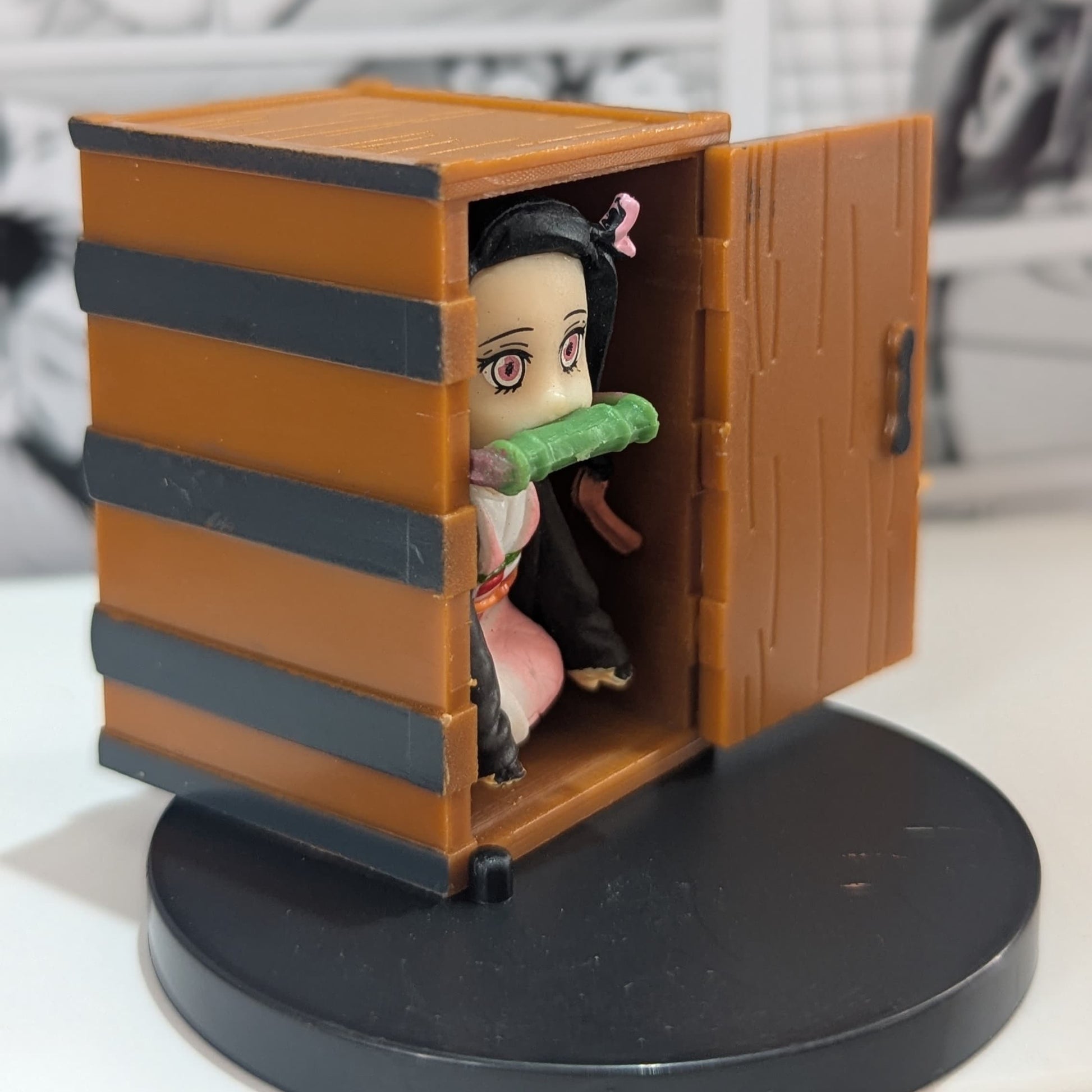 - Classic Box Pose: Nezuko curled up in her signature wooden box